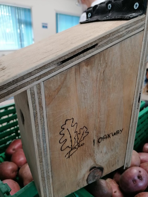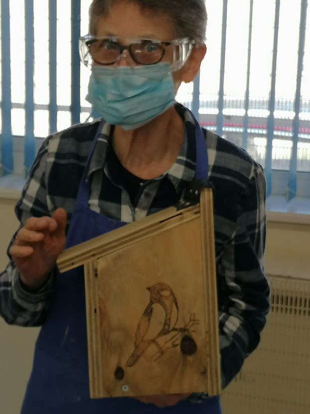 The bird box has been built by the RSBC specifications, also have been Pyrographed by one of ‘The Shedders’ with individual designs